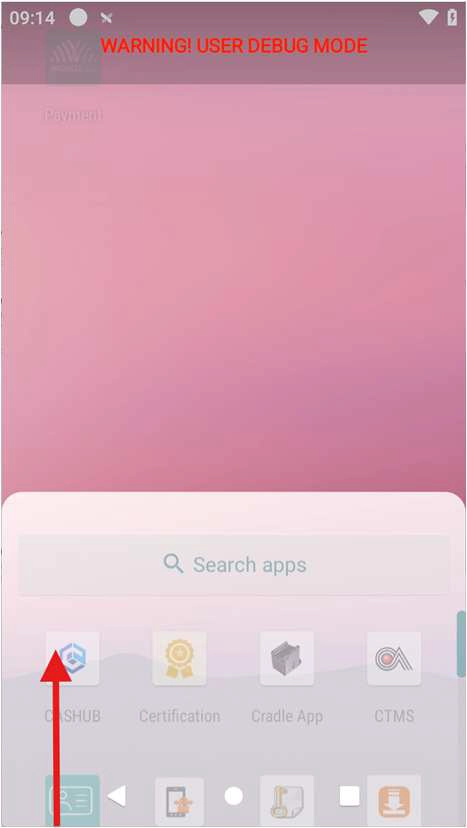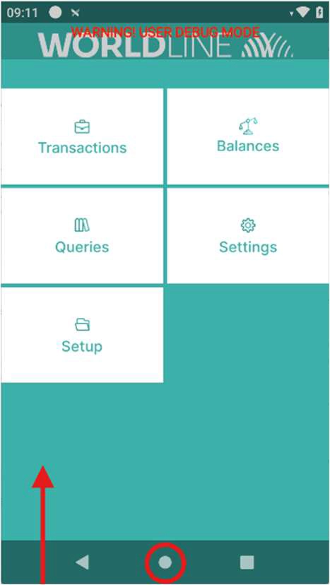Access the launcher on your payment terminal by pressing the circle at the bottom of the screen. If the circle isn't visible, swipe up from the bottom of the screen to reveal the navigation menu.
